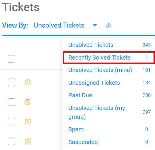 On your main ticket grid, you will see a view called "Recently Solved Tickets".
